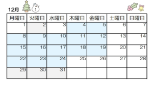 ※祝日の場合は営業し、翌平日を休館日とします。年末年始(12月29日~1月3日)